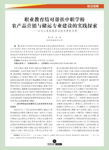 施成效等方面探索结对帮扶促进农产品营销与储运专业高水平建设的路径,以推进职业教育精准扶困工作深